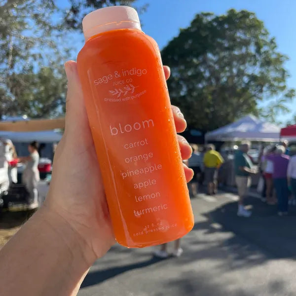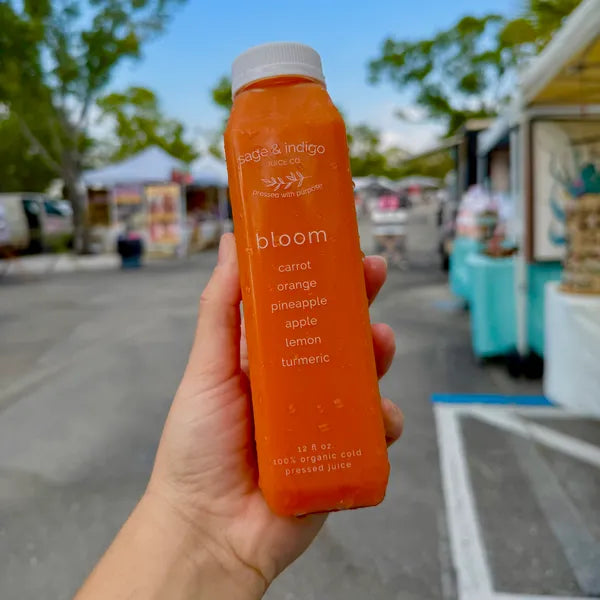 Introducing BLOOM, a refreshing, all-natural juice blend that brings the vibrancy of nature straight to your taste buds. Crafted with a medley of handpicked ingredients, BLOOM bursts with the goodness of orange, carrot, pineapple, apple, lemon, and a dash of turmeric for an extra boost.